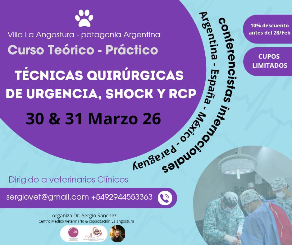 Le compartimos información del Curso Teórico – Práctico de “Técnicas Quirúrgicas de urgencia, shock y RCP”. El mismo tendrá lugar los días 30 y 31 de marzo de 2026, en Villa La Angostura – Patagonia Argentina.